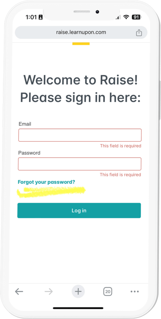 - Use the browser on your phone to visit https://raise.learnupon.com/ directly (outside the portal)